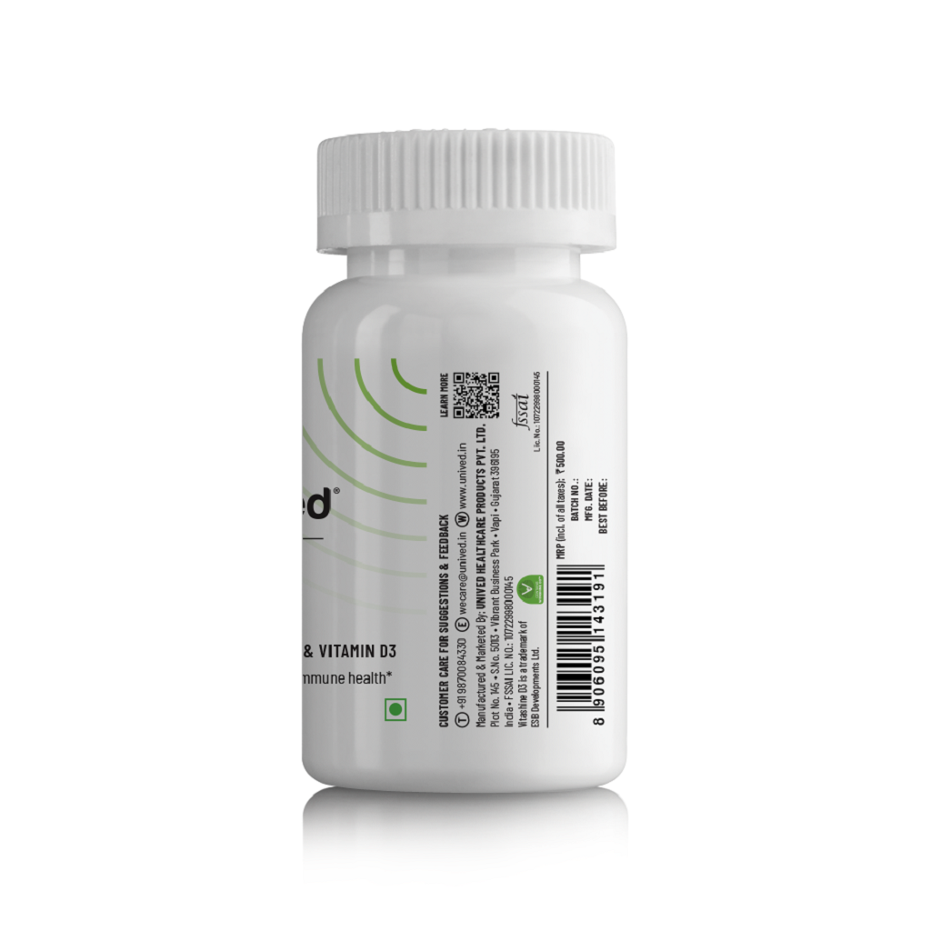 Unived’s B12 and D3 is ideal for people on a vegetarian diet or insufficient diet and for people who spend most of their time indoors and elderly who are vulnerable to deficiency of these two crucial vitamins.