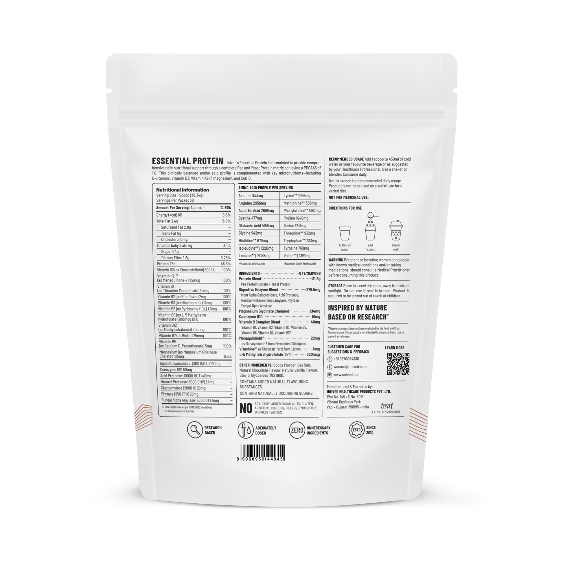 PDCAAS 1.0 protein combined with essential micronutrients targeting common deficiencies: complete B-Complex (per RDA) for energy metabolism, plant-based D3+K2 for bone health and calcium regulation, and CoQ10 for cellular energy and cardiovascular function. Complete daily nutrition in one formula.