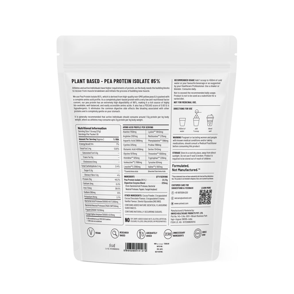 Unived Pea Protein Isolate is a clean plant-based vegan protein that is scientifically formulated with a blend of pea protein isolate - for building lean muscle mass and natural digestive enzymes for easy digestibility of the proteins.